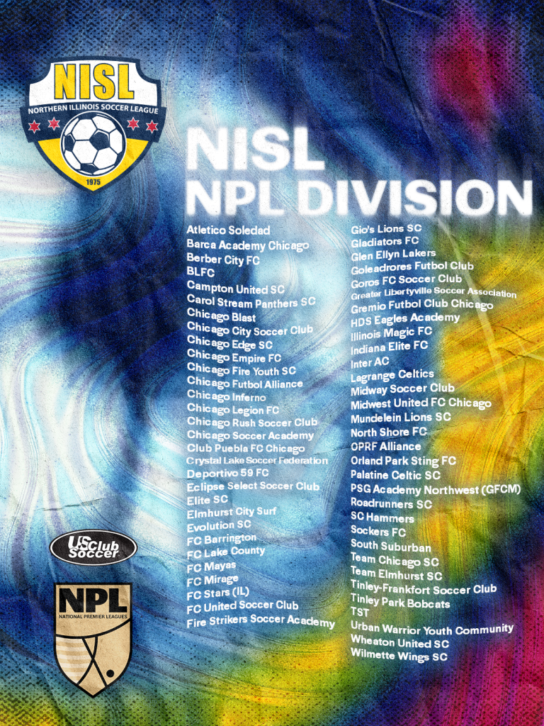 The Northern Illinois Soccer League (NISL) was founded in 1975 and has since become one of the largest and most competitive youth soccer leagues in the United States with more than 17,000 players on 1,300 teams in more than 120 Chicago metropolitan communities. Among its levels of competition is the NISL NPL Division, which has been a member league of the National Premier Leagues platform since the NPL was founded with the 2011-12 season.