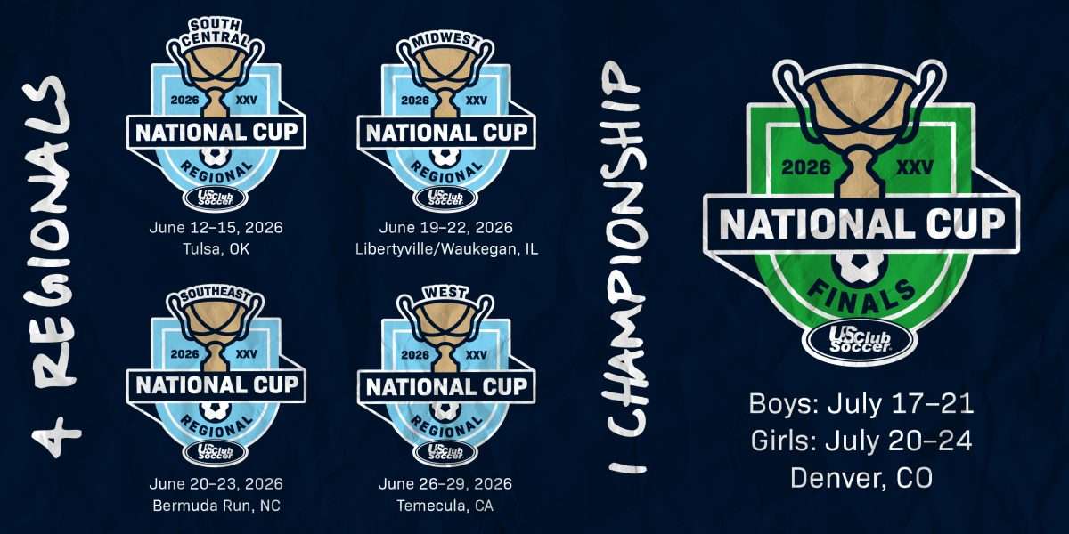 Mark your calendars: Registration for all 2026 National Cup Regionals will open Jan. 5, and teams will be accepted on a first-come, first-served basis. Open to U-13 through U-19 boys and girls age groups, the competition series features Super Group (most competitive) and Premier Group divisions. Champions from Regionals and qualifying state cups earn advancement to the National Cup Finals.